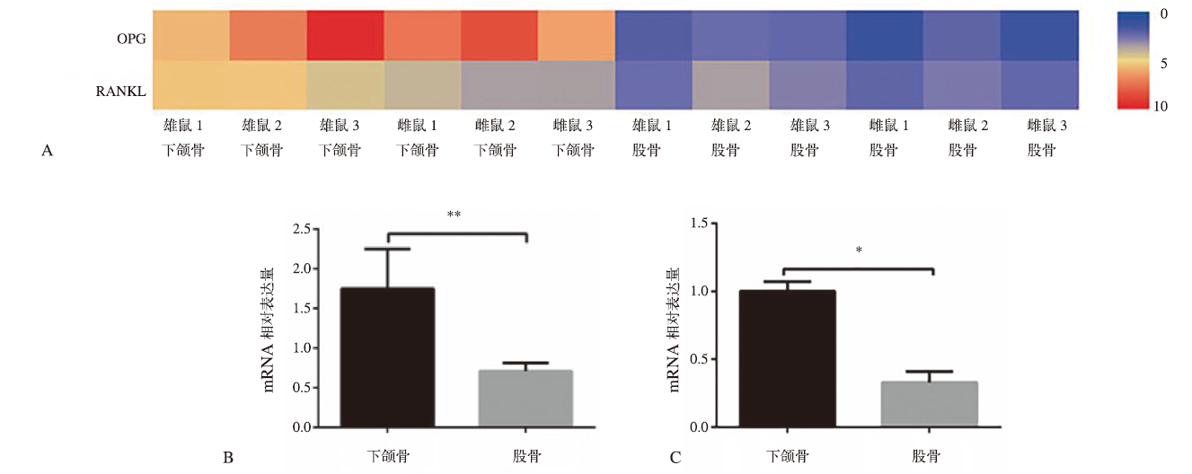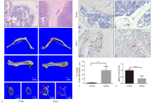 目的 探究下颌骨和股骨中骨保护素(OPG)与核因子κB受体活化因子配体(RANKL)的比值是否参与调控肺癌细胞骨转移部位差异。方法 采用小鼠Lewis肺癌细胞构建全身性肺癌细胞骨转移小鼠模型及股骨局部肺癌细胞骨转移模型,苏木素-伊红染色与显微CT(MicroCT)检测肿瘤细胞定植与骨组织破坏情况,组织蛋白酶K免疫组织化学染色检测骨组织中破骨细胞活化情况,转录组测序(RNA-seq)及实时定量聚合酶链反应(RT-qPCR)检测骨组织中OPG mRNA/RANKL mRNA比值。 结果 全身性肺癌细胞骨转移小鼠模型证实:相较于股骨,下颌骨不易发生肺癌细胞骨转移。分析生理情况下小鼠下颌骨与股骨的差异,发现在肺癌细胞骨转移低发的下颌骨中破骨细胞数目明显少于转移高发的股骨,且OPG mRNA/RANKL mRNA比值明显高于股骨(P<0.01)。进一步分析发生肿瘤细胞转移的骨组织中破骨细胞活化情况及OPG mRNA/RANKL mRNA比值发现,肺癌细胞骨转移引起的骨破坏主要发生在组织蛋白酶K阳性破骨细胞集中分布的区域,发生肿瘤细胞转移的骨组织中破骨细胞数目明显多于非骨转移组(P<0.01),且OPG mRNA/RANKL mRNA比值明显低于非骨转移组(P<0.000 1)。结论 在小鼠肺癌细胞骨转移低发的下颌骨与高发的股骨中,破骨细胞活化情况及OPG mRNA/RANKL mRNA比值存在明显差异,提示骨组织可能通过OPG/RANKL影响破骨细胞活化进而参与调控肺癌细胞骨转移部位差异。
