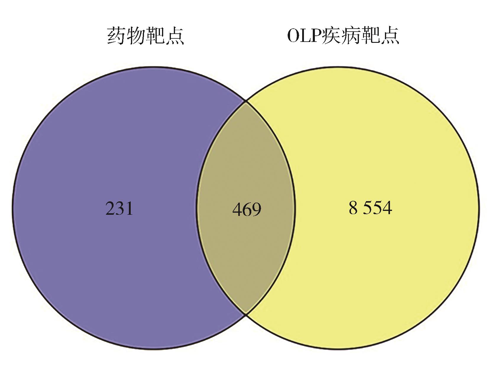 OLP疾病靶点与药物交集靶点韦恩图OLP疾病靶点与CDDP药物作用靶点取交集得到469个靶点。"