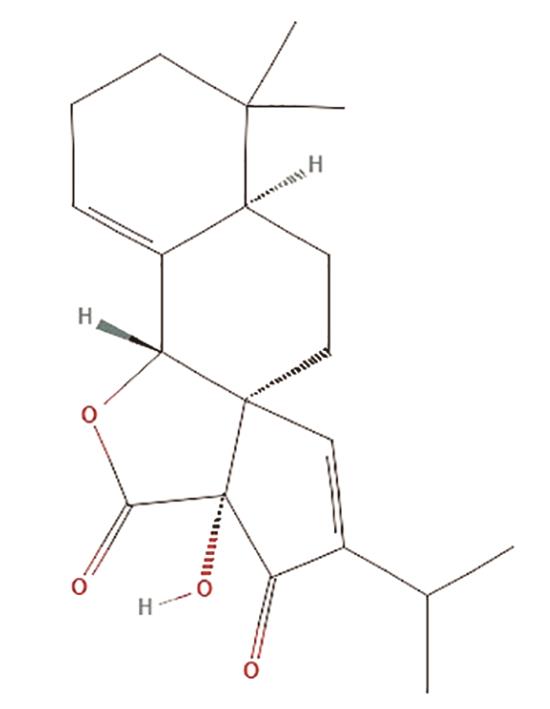 丹参*MOL007064przewalskin b(1R,4R,10R,13R)-13-羟基-5,5-二甲基-15-丙烷-2-基-11-氧酸四环[8.6.0.01,13.04,9]十六烷-8,15-二烯-12,14-二酮110.320.44